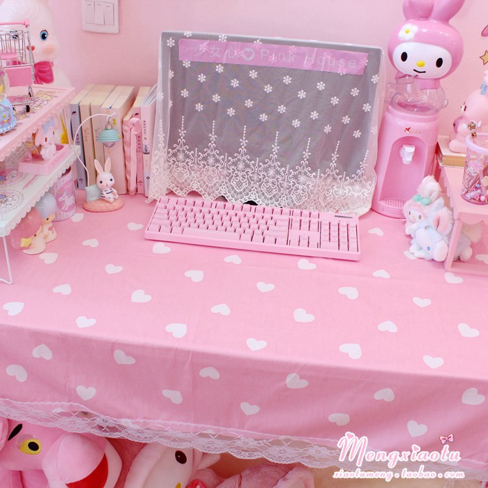 Girl Heart Pink Love Lace Edge Tablecloth Soft Girl Room Bedroom