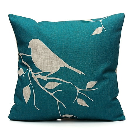 Decorative Throw Pillow Cover 18 X18 Cute Bird Linen Cotton