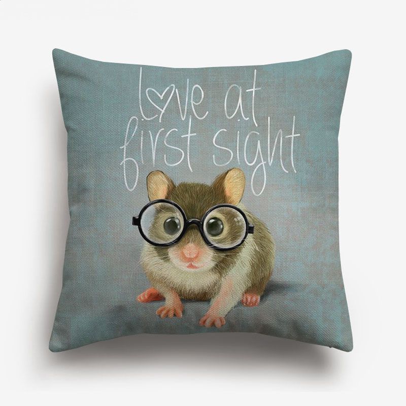 Little Mouse With Glasses Cushion Covers Cute Animals Cat