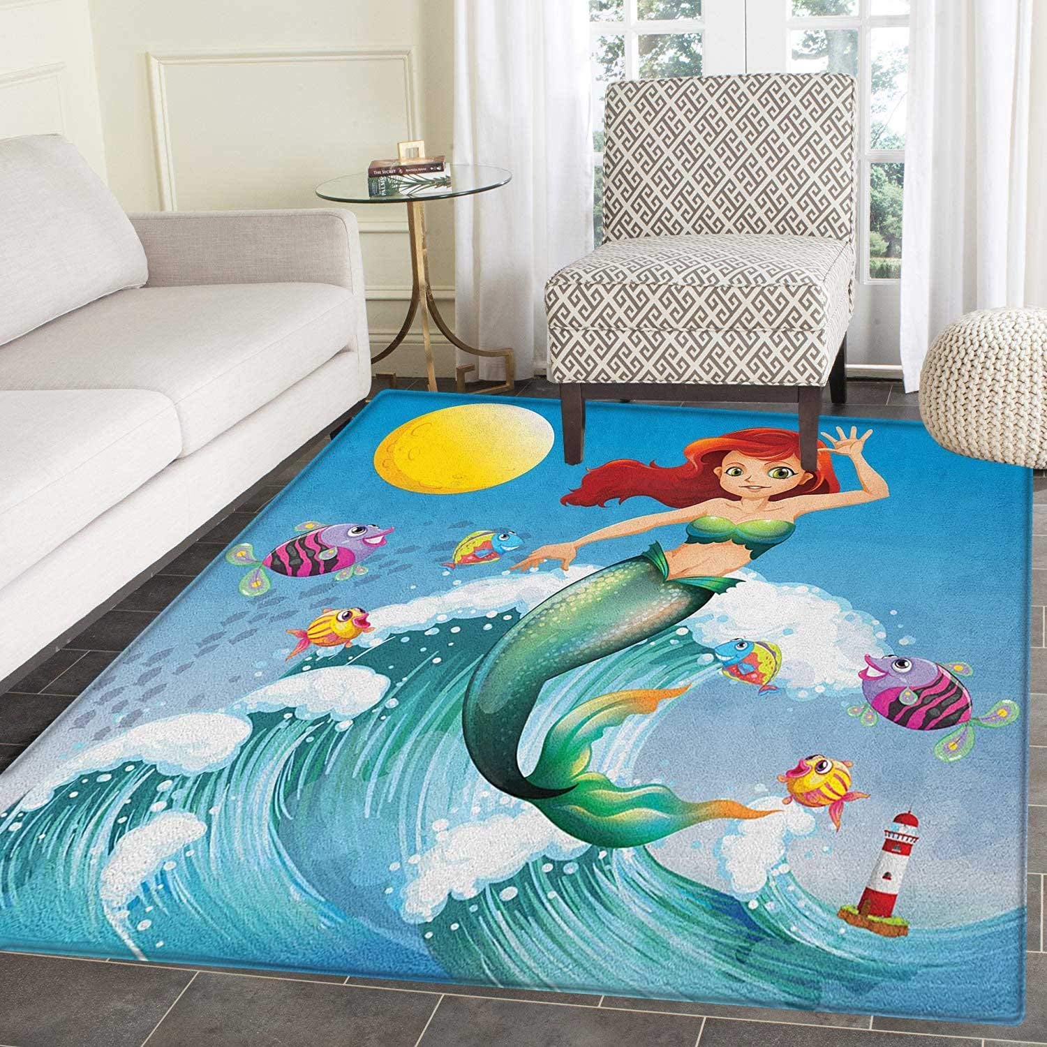 Mermaid Rugs For Bedroom Illustration Of Cute Little Mermaid On