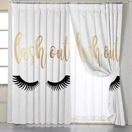 Blessliving Eyelash Print Window Curtains Gold White Living Room