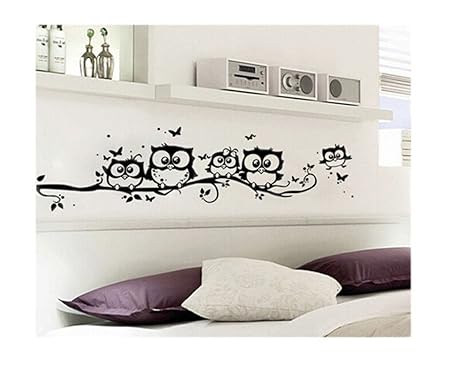 Miyaia Cute Five Owl On The Tree Diy Wall Stickers Art Decor Mural