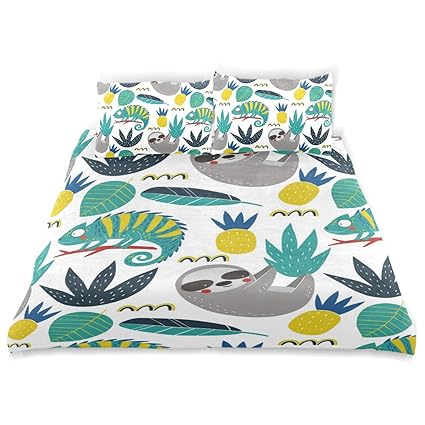 Bishuo Cute Cartoon Sloth Chameleon Character Duvet Cover Set