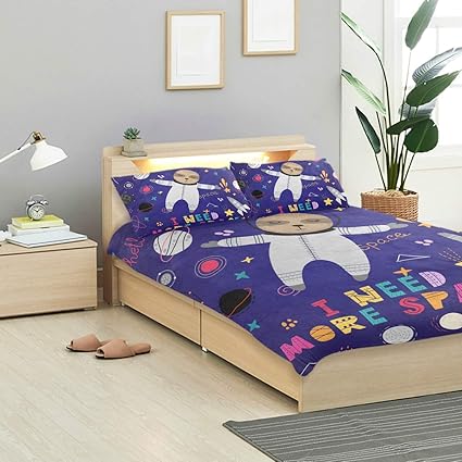 Lonsant Cute Sloth Space Print Spaceships Duvet Cover Set Design