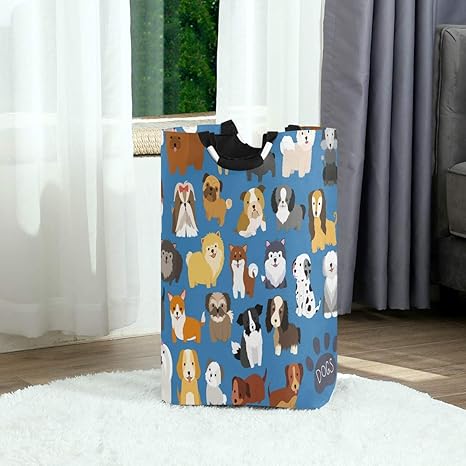 Cute Dog Large Laundry Baskets Washing Hamper Bag Black White