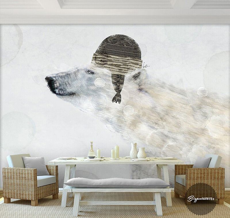 Cute Polar Bear Wallpaper Wall Mural 3d Cartoon Photo Wallpaper