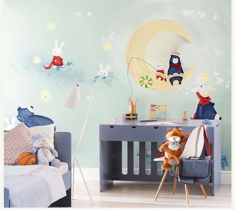 Custom Moon Cute Bear Rabbits Murals 3d Wall Photo Murals
